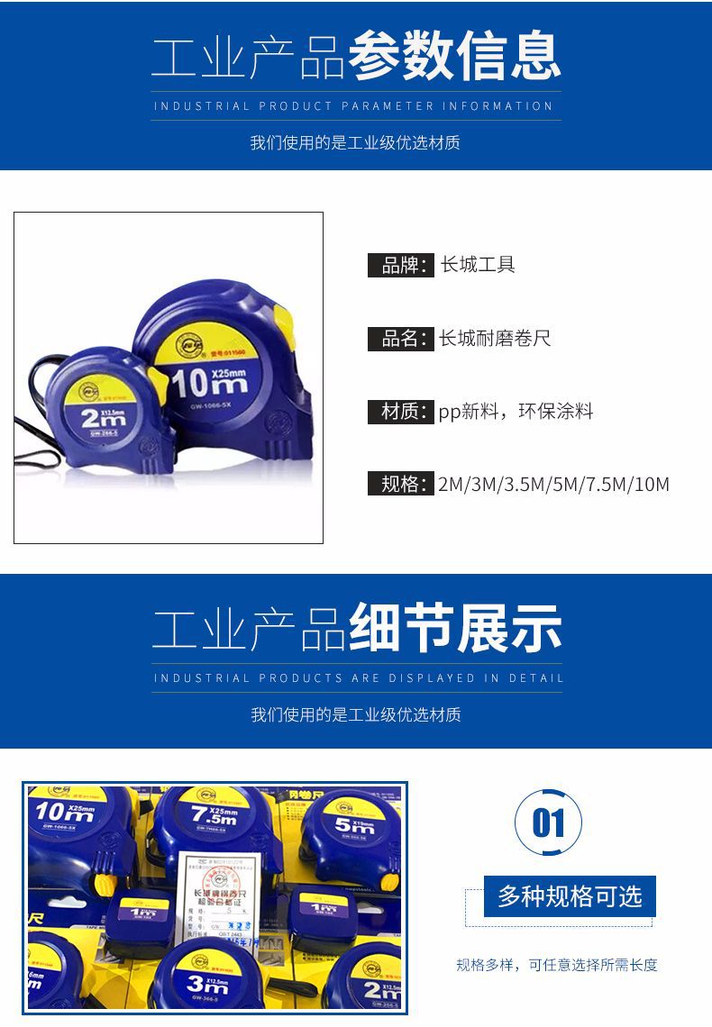 型号:卷尺(2m*12.5mm),卷尺(2m*16mm),卷尺(3m*12.5mm),卷尺(3m*16mm),卷尺(3.5m*12.5mm),卷尺(3.5m*16mm),卷尺(5m*16mm),卷尺(5m*19mm),卷尺(5m*25mm),卷尺(7.5m*25mm),卷尺(10m*25mm)